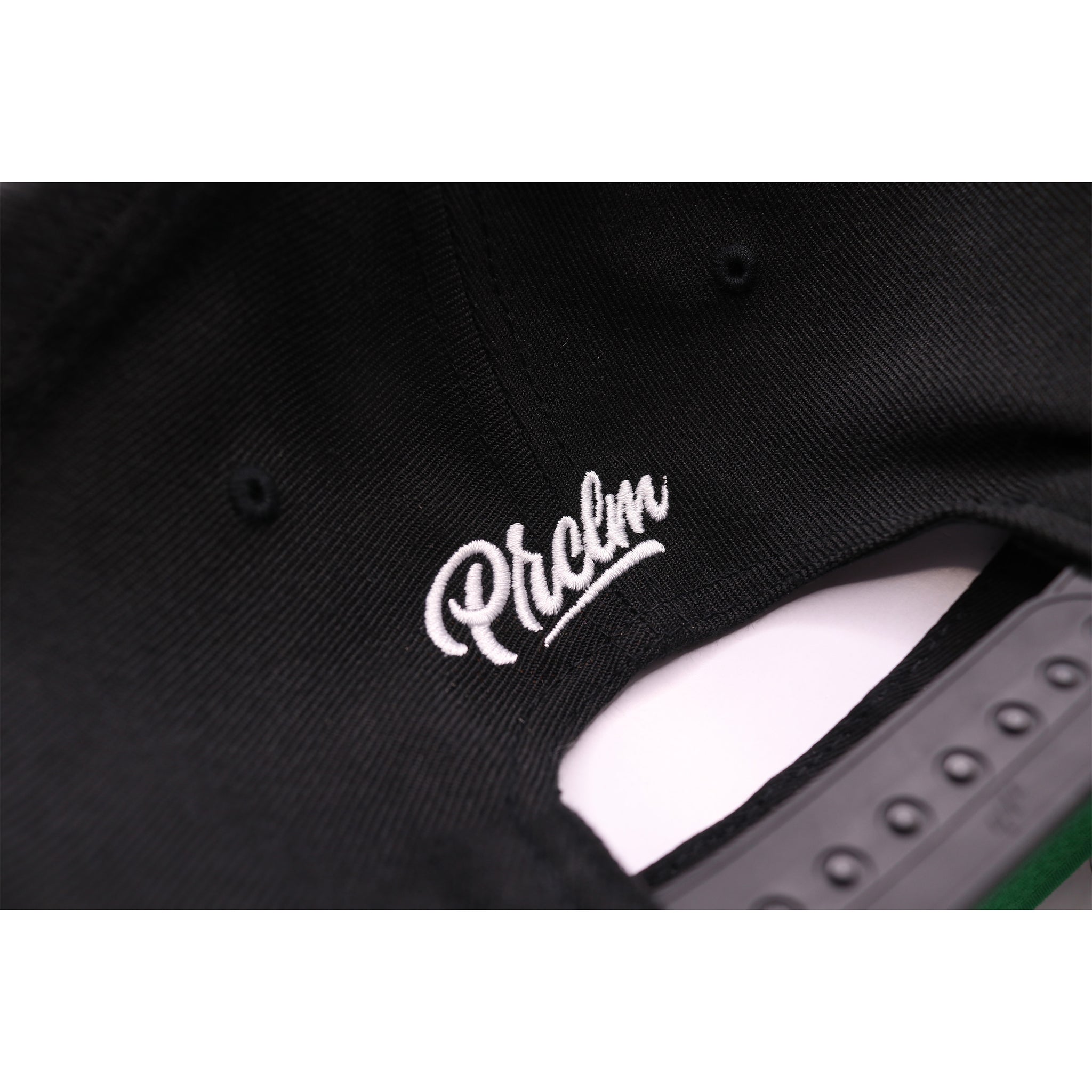 • 80/20 acrylic/wool• Embroidered "P" on front• Embroidered "PRCLM" logo on back • Sizes: One size fits most• Snapback closure• Color: Black/white